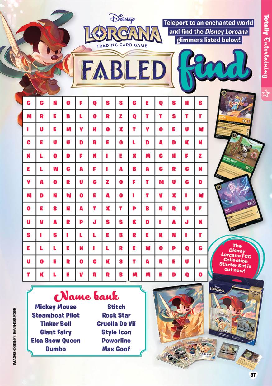 If you have November/December 2025 issue of Total Girl, you may have already seen this Disney Lorcana TCG Fabled Find activity. See if you found all the magical identities in the word find in the solutions below! 🪄❄️