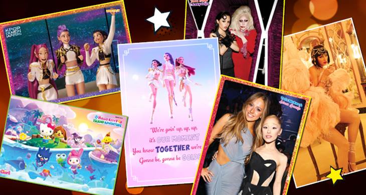 To start, we have the sweetest snap of pop girls Tate McRae and Ariana Grande – slaying as usual we must add! Then, you’ll get not one, but TWO epic shots of HUNTR/X queens, Rumi, Mira, and Zoey from KPop Demon Hunters. One even has lyrics on it – can you guess which song the lyrics are from? Finally, we have popped in a cutesy poster of the Hello Kitty Island Adventure game. Super bright and colourful to bring those summer vibes! 🎤✨�
