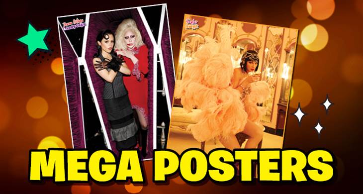 Now, the moment you have all been waiting for… our MEGA posters! There’s one of a super iconic duo rn – Jenna Ortega and Lady Gaga posing in a coffin. So Wednesday coded! Then of course, the cherry on top – a shot of our cover star, Taylor Swift, looking totally glam from her latest album The Life of a Showgirl. We're SO obsessed with these posters! 🖤❤️🔥💃